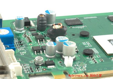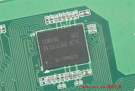 显卡采用了三星 -1.4ns GDDR3颗粒,容量128M,位宽128bit,默认频率1430MHz,由于铝壳直插及钽容的采用,整卡的稳定性及超频能力有所提升。