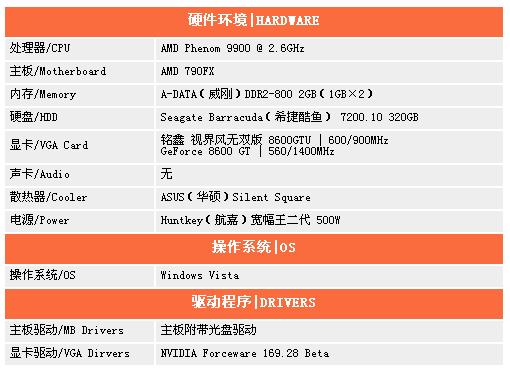 为了不让处理器成为整个平台的瓶颈,我们选择了AMD Phenom 9900处理器来进行测试,我们并没有再对它进行超频,而是使用了默认的频率。