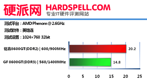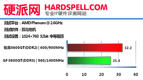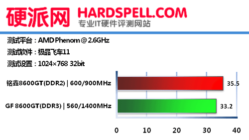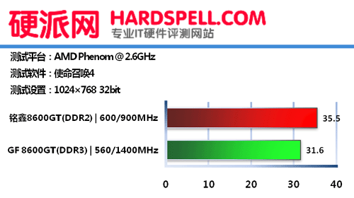 在对显卡的选择上,考虑到测试定位于8600GT的599元价位阶段,因此我们选择了一款目前比较有代表性的产品,频率为560/1400MHz,用于对比仅采用了GDDR2显存的铭鑫8600GTU。