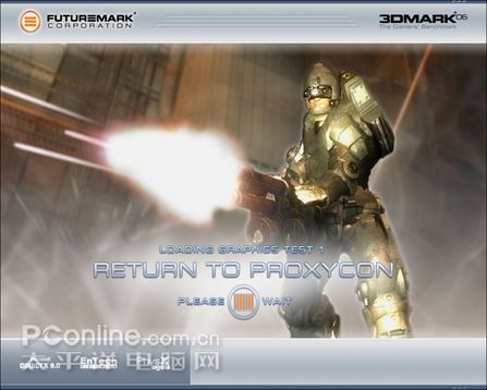 3DMark06的标准评测包括两个HDR评测两个SM3.0图形评测。3Dmark06还首次使用了AGEIA公司的PhysX物理引擎,用CPU模拟物理引擎计算,这是3Dmark06的一个闪亮的特色。CPU评测的成绩被强制加入到总分里面去,Futuremark揭示了未来游戏发展的方向,CPU/GPU应该获得更好的平衡。而评测中,我们选择了标准分辨率1280*1024,不打开AA/AF特效。