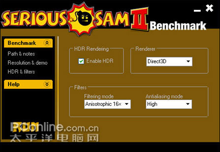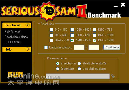 本次评测我们采用了Serious Sam 2的BenchMark,分辨率设定为1280* 1024和1920 * 1200两个。