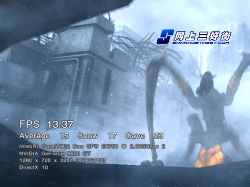 进入了DirectX 10图形接口的游戏测试环节,我们可以好好看看这款铭鑫视界风无双版8600GTU显卡在最新的游戏中性能表现如何。我们可以看到,经过一定程度的降低游戏画质,铭鑫视界风无双版8600GTU显卡运行最新的DirectX 10图形接口游戏时的速度还是可以得到保障的,说明如果仅仅是喜欢最新游戏尝鲜的话,铭鑫视界风无双版8600GTU显卡是完全可以满足您的。