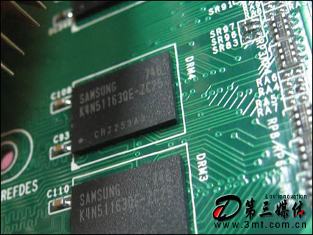 显存方面,显卡搭载了三星 2.5ns DDR2显存颗粒,构成了512M/128bit的显存规格,默认核心/显存频率为600/800MHZ。
