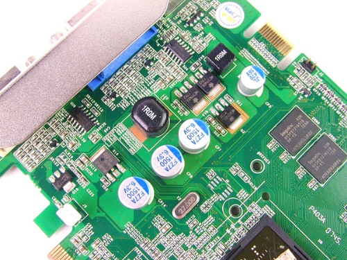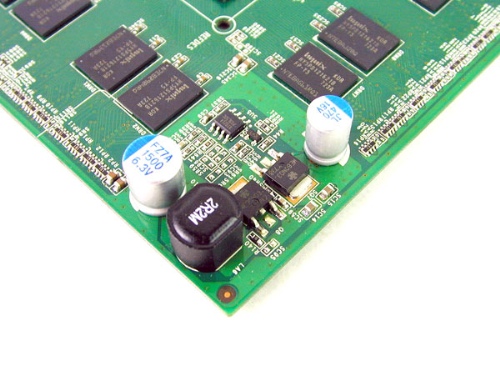 单相式显存供电系统,这个组合也是大家比较常见的设计,我们在多种显示核心的产品中均能够见到类似的组合,可见这种成熟的设计也是得到了大家的认同。