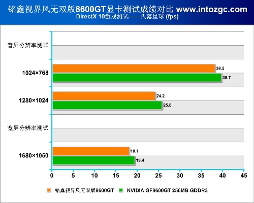 在此次测试中,我们还加入了一款采用256MB GDDR3显存设计的8600GT产品作为对比,从下面的对比性能测试中让我们来体会一下铭鑫GeForce 8600GT视界风无双版的能力。