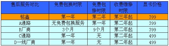 作为高性价比显卡的领导者,铭鑫深知消费者在追求高性能显卡的同时,同样希望自己的显卡能拥有较长的服务周期。因此,铭鑫率先在全系列显卡中推行“2+1”的3年无忧质保,其中第一年免费包换,第二年免费包修。免费质保时限覆盖显卡的整个换代周期,让您不再有“过保就坏”的担忧!