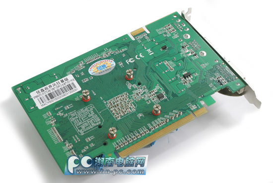 显卡用料做工上中规中矩,没有某些品牌低端产品夸张的缩水,绿色PCB板上布线工整,采用了全封闭式电感和全铝壳电容,低通完整,基本没有空焊点。