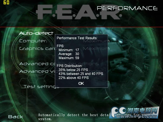 FEAR这款游戏对显卡的要求不低,也成为很多显卡测试的游戏,在没有设定最高分辨率和特效全开的情况下,铭鑫 视界风狂暴版8650GTU-512D3TC显卡在我们的3600+平台上也可以基本流畅运行这款游戏,游戏的平均帧数达到了30帧。