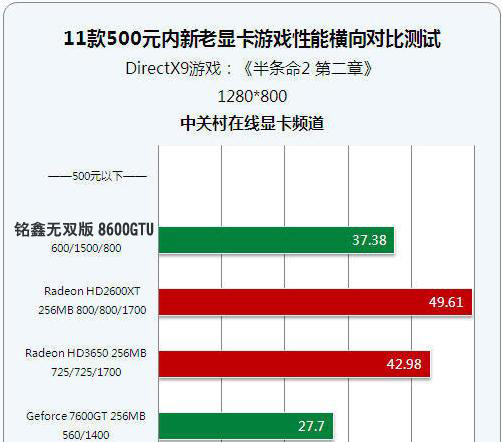 《半条命2 第二章》游戏当中运用了大量的HDR特效,所以架构较新的显卡在运行游戏时,执行效能比老架构的显卡更快。另外,Radeon X1650GT能在游戏中速度较快,也是因为当时领先的3:1黄金架构起到了作用。