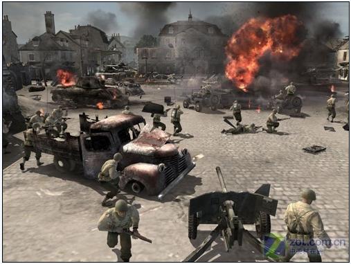二战是几年来长盛不衰的3D游戏题材,《英雄连》就是从101空降师诺曼底登陆后在欧洲战场血战题材入手的最新战略游戏,不过其自带测试并非针对即时战略的实际场景,反而更像第一人称视角游戏。v1.7补丁让《英雄连》提供了让游戏以DirectX 10 3D API运行的选项,与此同时,DX10开关的开启也让Company of Heroes v1.7成为新一代显卡杀手,这个模式下及所有显卡的速度都较v1.4版本有巨幅跌落,但是本次测试不开启DirectX 10 3D API运行。