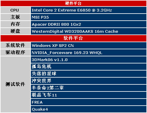 为避免平台出现瓶颈,所有配件都采用当今相对高端的装备。测试项目方面,我们舍弃了老旧的3Dmark05,只采用3Dmark06作为理论性能的项目。而游戏方面,我们选取了其中3个DirectX10游戏、2个DirectX9游戏和1个OpenGL游戏。