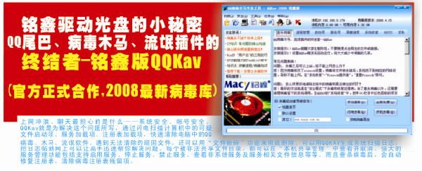 继率先在主流型号显卡中普及固态电容后,铭鑫再次从“为顾客着想”的角度出发,与QQKav强强联手,全系列显卡均捆绑“QQKav铭鑫特别版”。2年免费质保+主流型号普及全固态电容+QQKav,“软硬兼施”只为带给您高枕无忧的使用享受。超强的产品附加值,让您付出的每一分钱都获得超值回报!在这木马与病毒泛滥的时刻,铭鑫希望这一小小的软件能为您的电脑带来更多的安全。