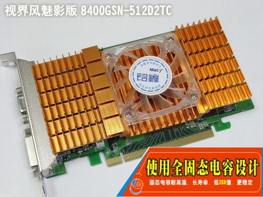 需要注意的是,此次全固态电容升级涵盖铭鑫旗下所有主流显卡产品,甚至包括8400GS这样的入门级产品(绝大部分品牌该型号的产品绝对是使用液态电容),充分体现了铭鑫为顾客着想的经营理念和踏实的产品作风!