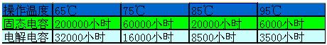 与液态电容相比,固态电容可谓优点多多。固态电容采用固态电解质。极低的等效串联电阻率(ESR)在显卡功耗越来越大的今天,可明显降低显卡的整体发热量,并节省能源。当然,固态电容最大的优势便是具备超长的使用寿命和超强的环境适应能力。这点可以从下面的比较表中明显看出来。