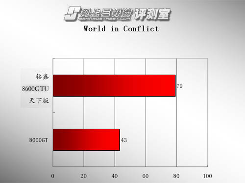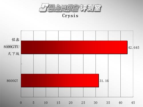 不过说起最新的游戏,恐怕还要看两款著名的游戏引擎——孤岛危机引擎与虚幻3引擎。这两款游戏并没有很好的趣味性,但是在画面方面绝对是未来一段时间的先锋,从测试速度对比上看,具有更好运算能力的铭鑫视界风天下版GF8600GTU显卡显然更加具有优势,而未来使用这两款游戏引擎的游戏相信会有很多。至于冲突世界恐怕属于一个极端的例子了,因为这款游戏在DX10模式下对于像素渲染的渴求已经达到了很高的程度,因此简单地拉升Shader频率可以很轻松地获得在性能方面的线性增长。