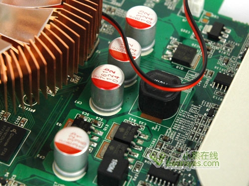 显卡采用分离式供电设计,可以有效的减少核心供电与显存供电的彼此干扰,在用料上,显卡全部采用富士通电容,搭配了全封闭式电感及低内阻MOSFET设计,非常之豪华,即使比之公版也毫不逊色。