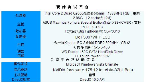 测试项目包括3DMark 06、《失落的星球》、《虚幻竞技场3》、《冲突世界》、《切尔诺贝利阴云》等众多主流游戏,分辨率包含了主流的1280×1024及1680×1050!
