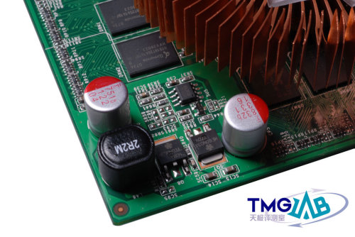 显卡的供电部分,铭鑫8600GTU采用的是核心和显存分离式的供电设计。供电电容完全采用了100%的全固态电容,一颗固态电容的成本等于N家其他品牌DDR3产品上全部液态电容的成本总和。
