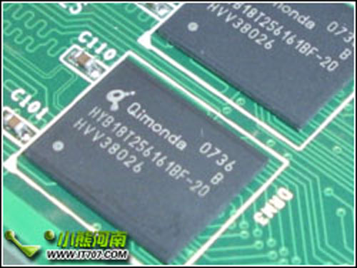 显存方面,显卡搭载了奇梦达2.0ns DDR2显存颗粒,构成了256M/128bit的显存规格(可开启TC共享提升显存至512M),默认核心/显存频率达到了600/900MHz。