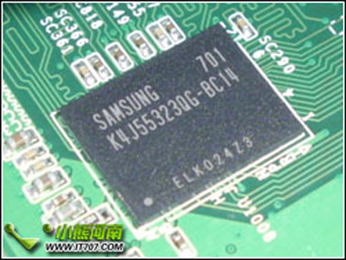 显存方面,显卡使用了三星1.4nsDDR3颗粒,共4颗组成了128MB/128Bit规格,出厂频率为核心/显存600MHz/1500Mhz,高出了公版GeForce 8500GT默认频率450/800MHz不少,而且通过TC(Turbo Cache)功能,可以扩展到512MB的大小。