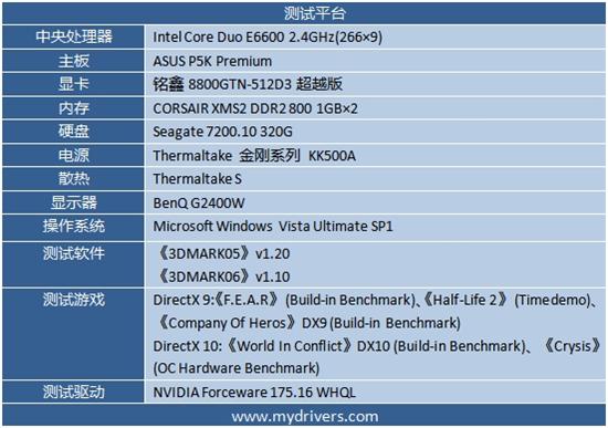 测试当中的驱动使用Forceware 175.16 ,该驱动为上月14号发布的官方正式版WHQL驱动,可以让8800GT发挥出更稳定的性能。