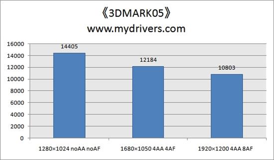 3DMARK05的成绩非常高,在高分高抗锯齿下的得分已经能大大甩开Radeon HD3870与Geforce 9600GT。