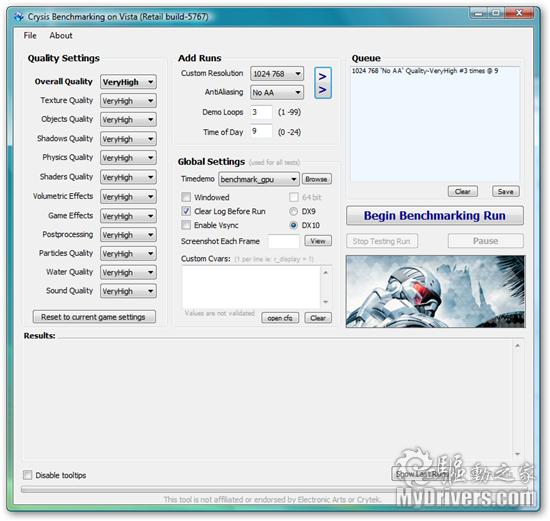 测试方法:Crysis Bench Mark Tool v1.05 Final