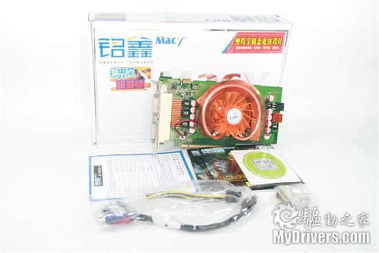 包装延续着以往其N卡产品的系列包装,铭鑫在以往的产品上总是十分简单,一般附件都只是一根S-Viedeo输出线,而这次打开包装意外发现附件有所增加,全部附件包括了:VGA转DVI接口、6pin辅助电源接口转换线、S-Video输出线、说明书质保卡与驱动光盘。虽然只是中规中矩但是我们还是能看出其对这款新品的重视。