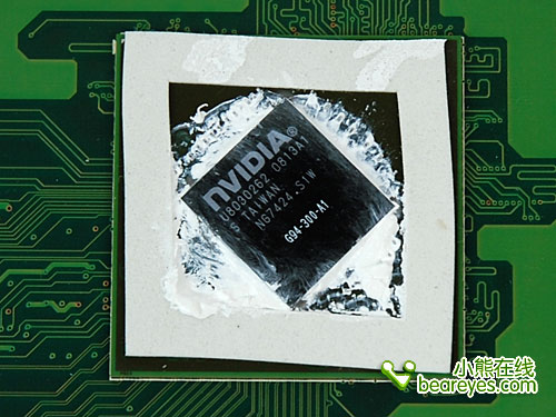 铭鑫9600GTU采用了A1版本的G94-300核心,台积电65nm工艺,核心频率700MHz,Shader频率1750MHz,核心面积228mmx111mm,采用uBGA 斜45°封装,比RV970稍大一些。G94核心内建64个Shader单元,32个纹理单元和12个光栅处理单元,支持微软DirectX 10和SM4.0特效。显卡核心直接整合HDCP,通过DVI-HDMI转接头输出HDMI信号。