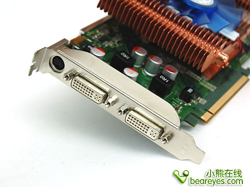 接口方面是标准的双DVI+S-Video接口,通过SIDIF接口输入音频信号,配合G94的高清解码能力,9600GT也可以输出HDMI高清多媒体信号。