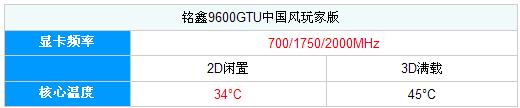 在近期这波9600GT降价大潮中,铭鑫率先将旗下一款视界风9600GTU中国玩家版杀到699元,产品并非通常的降频缩水版,这款产品搭配了512M 1.0ns GDDR3显存颗粒,核心/SP单元/显存频率分别是700/1750/2000MHz,完全超越公版的频率,引起不少玩家的持续关注。