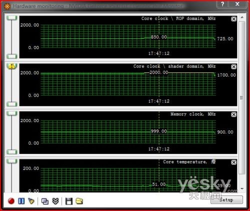 铭鑫视界风PK版GF9650GTU 512MB(TC)显卡在超频至850/2000MHz后,运行3D Mark06时的最高温度只有51度;这全赖其所采用的65nm制程,不但发热量低,可超频性也更强。
