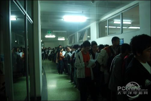 这时候才是下午的5点,成都的天气雾很大,但同学们热情不减。5点10分,教室外面已经排起了三十多米的长龙。