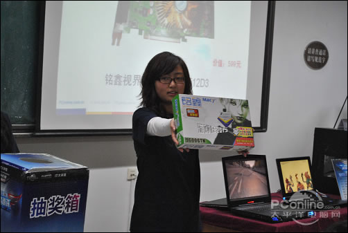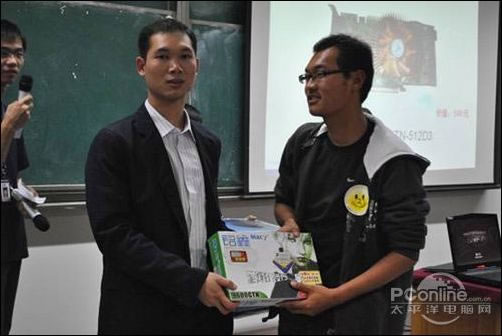 科正达电子成都分公司负责人苏德山先生为我们幸运的同学颁奖。同学看着我们的嘉宾,那种眼神就叫羡慕,羡慕我们的嘉宾每天都可以用最新款的显卡。