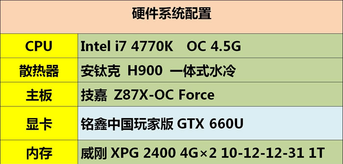 此次超频中所使用的BIOS为黑山老妖LYN特制版,默认频率1150MHz,Boost频率高达1400MHz,冰城黑龙使用破解版MSI Afterburnner软件把核心电压加到1.48V,核心频率拉到1532MHz,显存1855MHz,等效7420MHz的频率。测试平台使用技嘉的新一代Z87板王Z87X-OC Force,搭配特挑的1.15V 双4.5G的4770K。技嘉Z87X-OC Force最大的特点就是提供了SATA供电接口的显卡辅助供电接口,所以显卡超频非常给力。CPU散热器为安钛克的H900一体式水冷。此款水冷虽然扣具很狗血,但性能很强大,压4.7G的4770K都不在话下。
