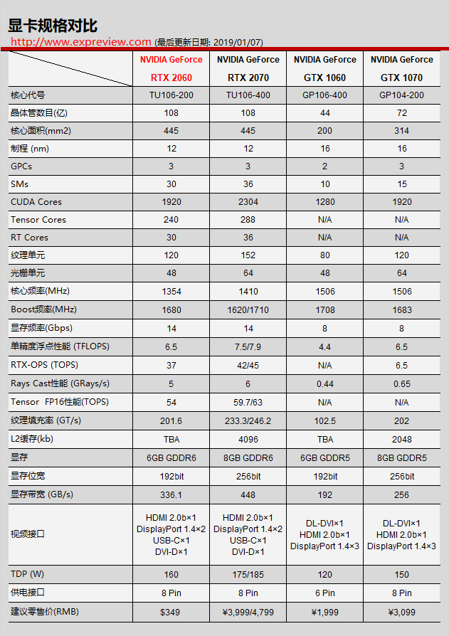 功耗肯定是见涨的,大家都说RT Core、Tensor Core平常都是“电炉丝”,光耗电不干活,确实有这可能性。RTX 2060功耗也提升到160W起步,比GTX 1070 150W还要更高一些。